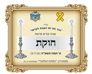 דבר תורה לפרשת "חוקת" תשפ"ה