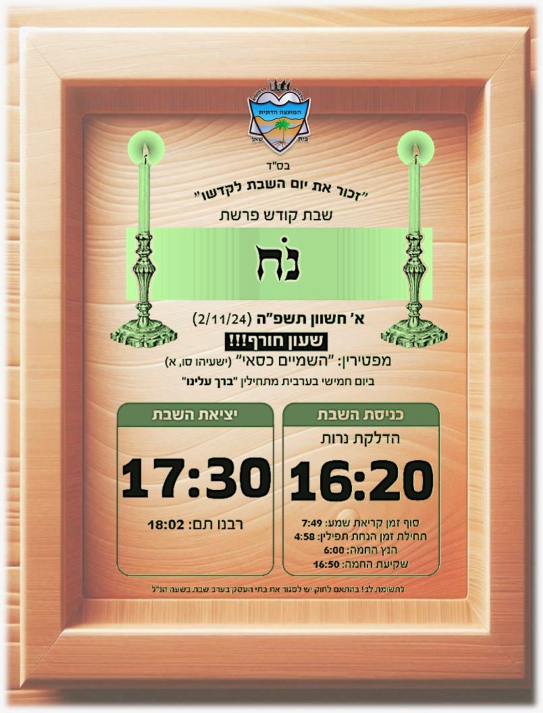 חלוקת לוח הדלקת נרות תשפ"ה