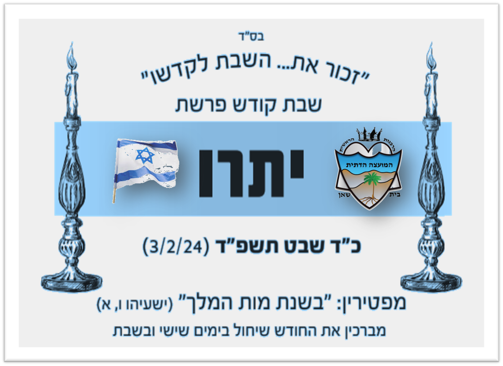 01 פבר שיעורי הרב דבר תורה לפרשת "יתרו" תשפ"ד מפי הרב יוסף יצחק לסרי שליט"א רב העיר בית שאן פברואר 1, 2024 By datit קרא עוד