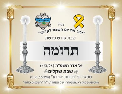 פרשת "תרומה" התשפ"ה